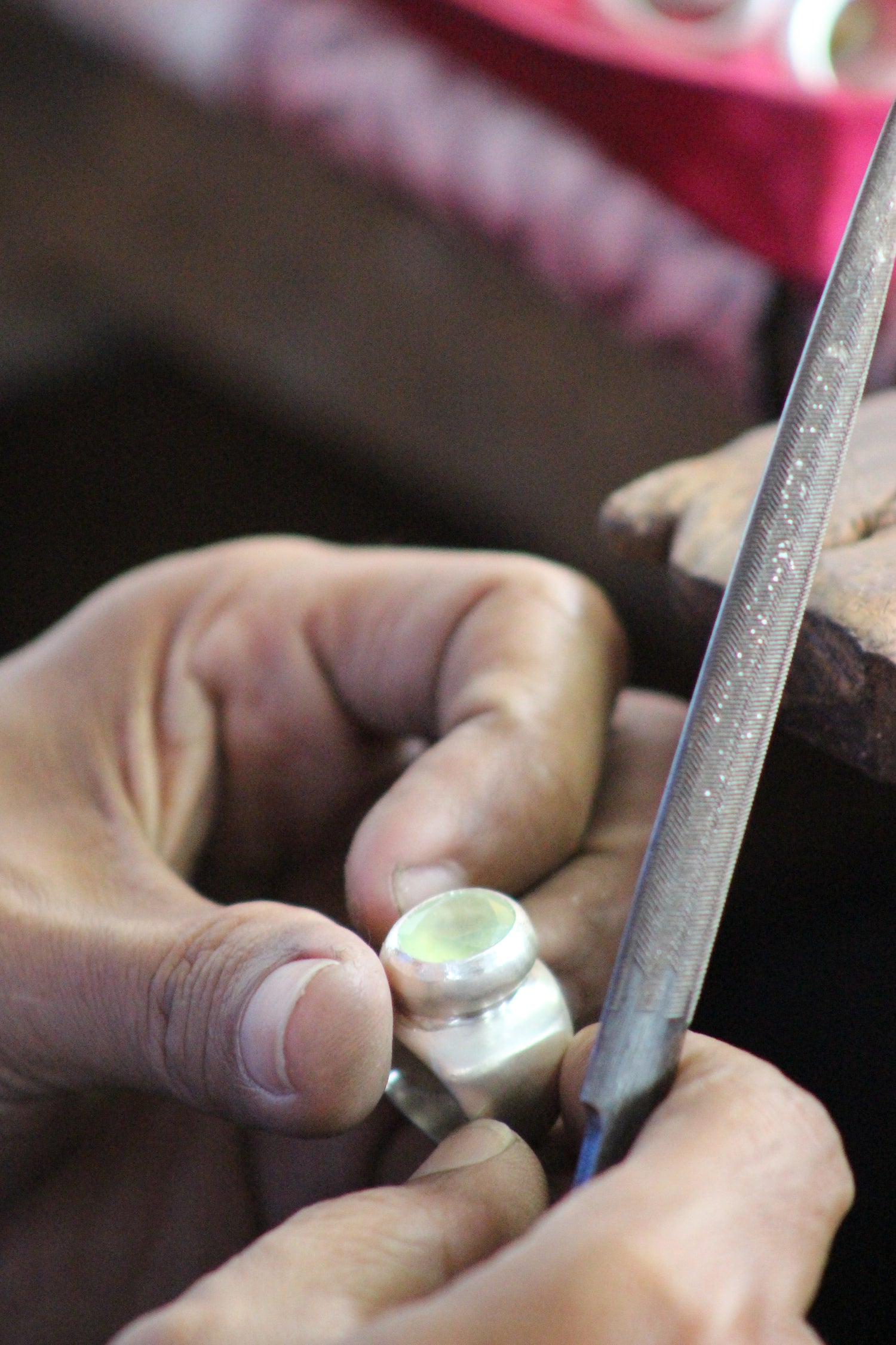 Im Herzen des Unternehmens sitzen der Hauptsilberschmied, Budi, seine Frau, Asia, welche die Stoffbeutel für unsere Verpackungen näht, die Produktionsleiterin, Putu, ihr Mann, Dewa, welcher sich um die Logistik kümmert, Hanan, die für den Vertrieb verantwortlich ist, und Monikas Sohn, Momo, welcher ihr bei der Firmenleitung hilft.