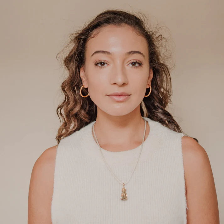 Der Anhänger ist aus massivem Messing gefertigt und wurden in einem galvanischen Goldbad mit einer 4µ dicken Schicht Gold überzogen, die besonders lange hält. Monika hat sich bewusst für Bronze als Grundmaterial entschieden, damit die der Anhänger in einem satten Sonnengold erstrahlt. Gerade bei einem so detailreichen Design kommt das handwerkliche Geschick der balinesischen Schmiedekunst richtig zur Geltung.