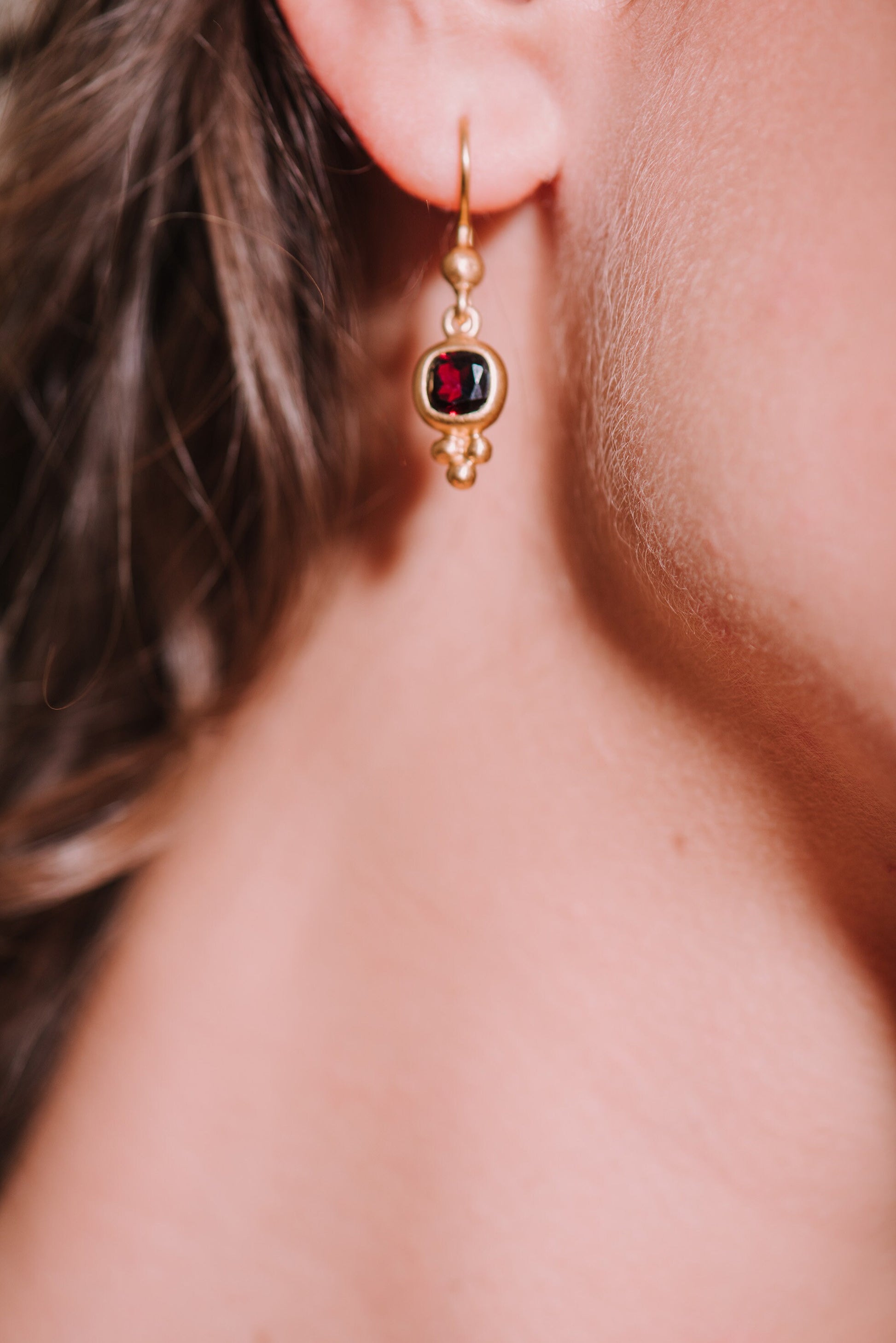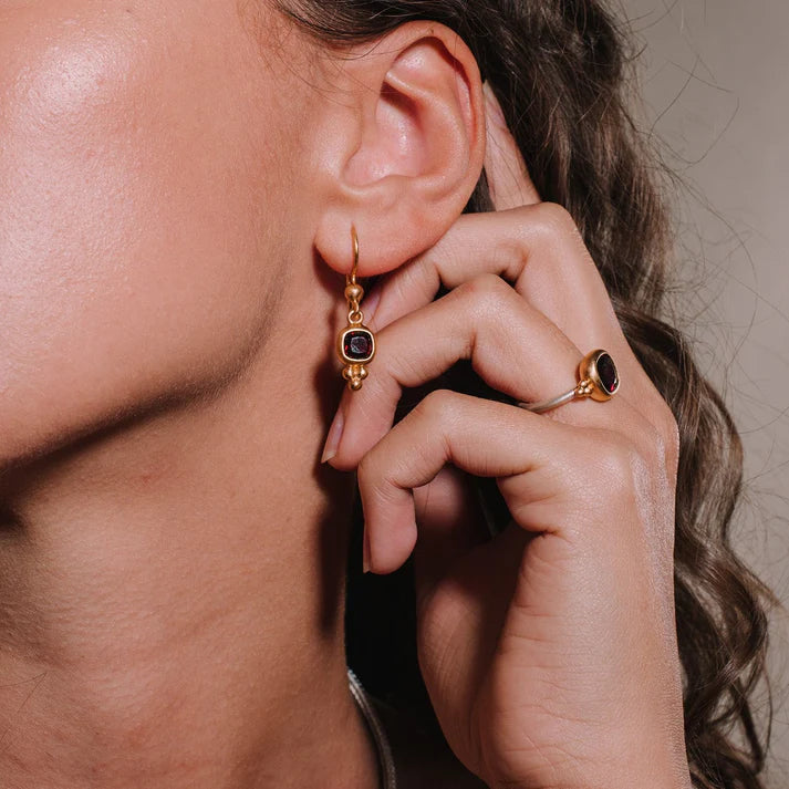 Unsere facettierten Granat Ohrhänger sind die perfekte Ergänzung zu Ihrem Schmuckensemble. Sie strahlen Liebe, Leidenschaft und künstlerische Gestaltung aus und sind inspiriert von den Traditionen der Vergangenheit.