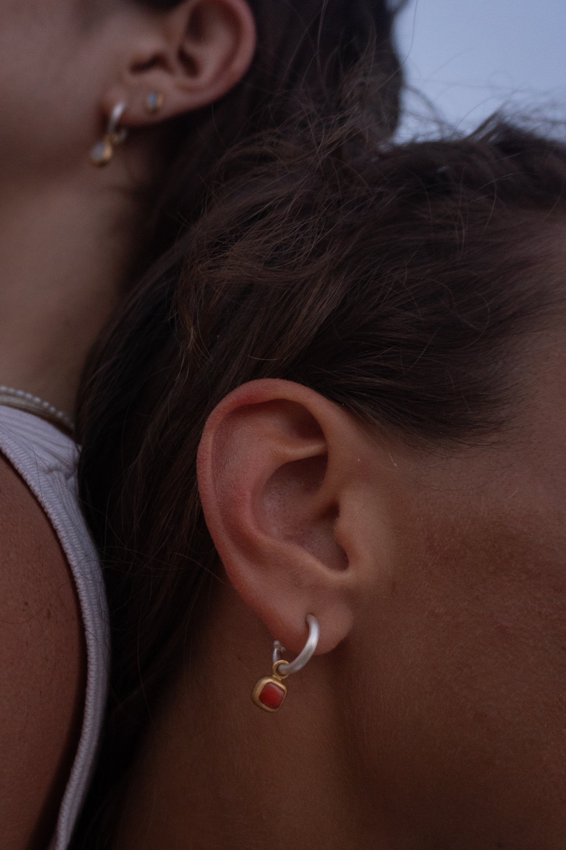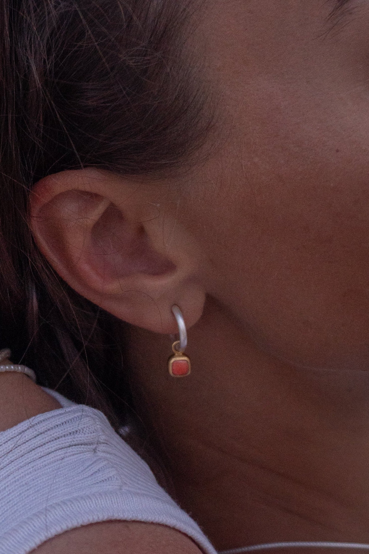 Die Creolen sind leicht und angenehm zu tragen – ihre leuchtende Koralle bringt Wärme und Farbe in jeden Look.