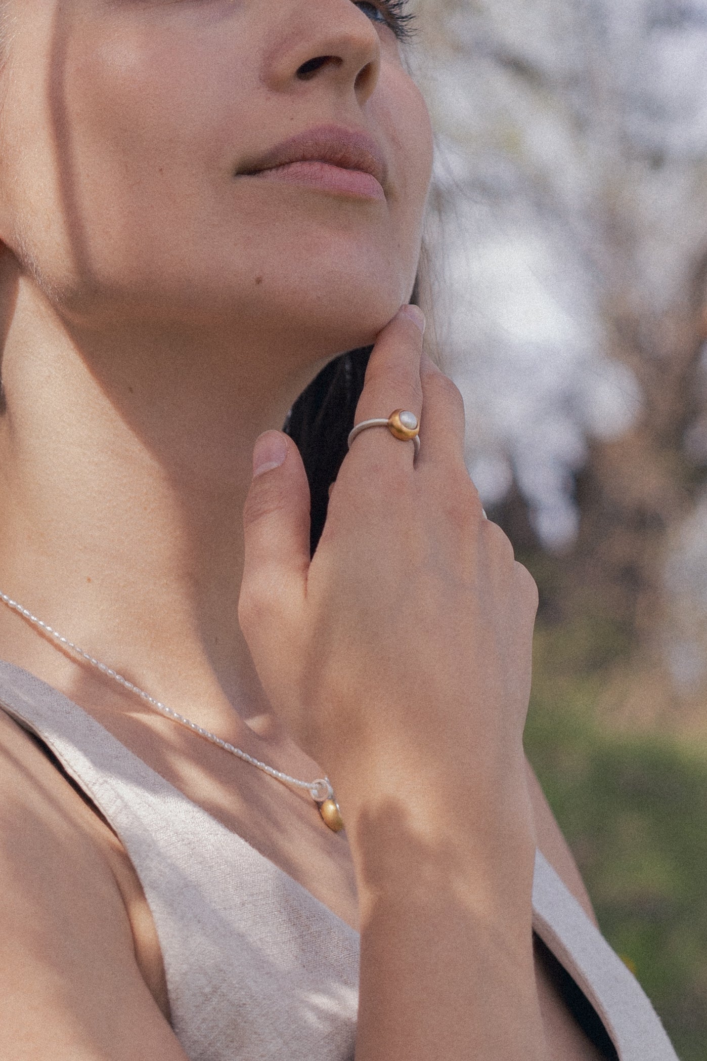 Der vergoldete Perlen Ring aus Sterling Silber ist als Teil der Pearl Classics ein Symbol der natürlichen Schönheit und des hochwertigen Designs von Monika Herré.