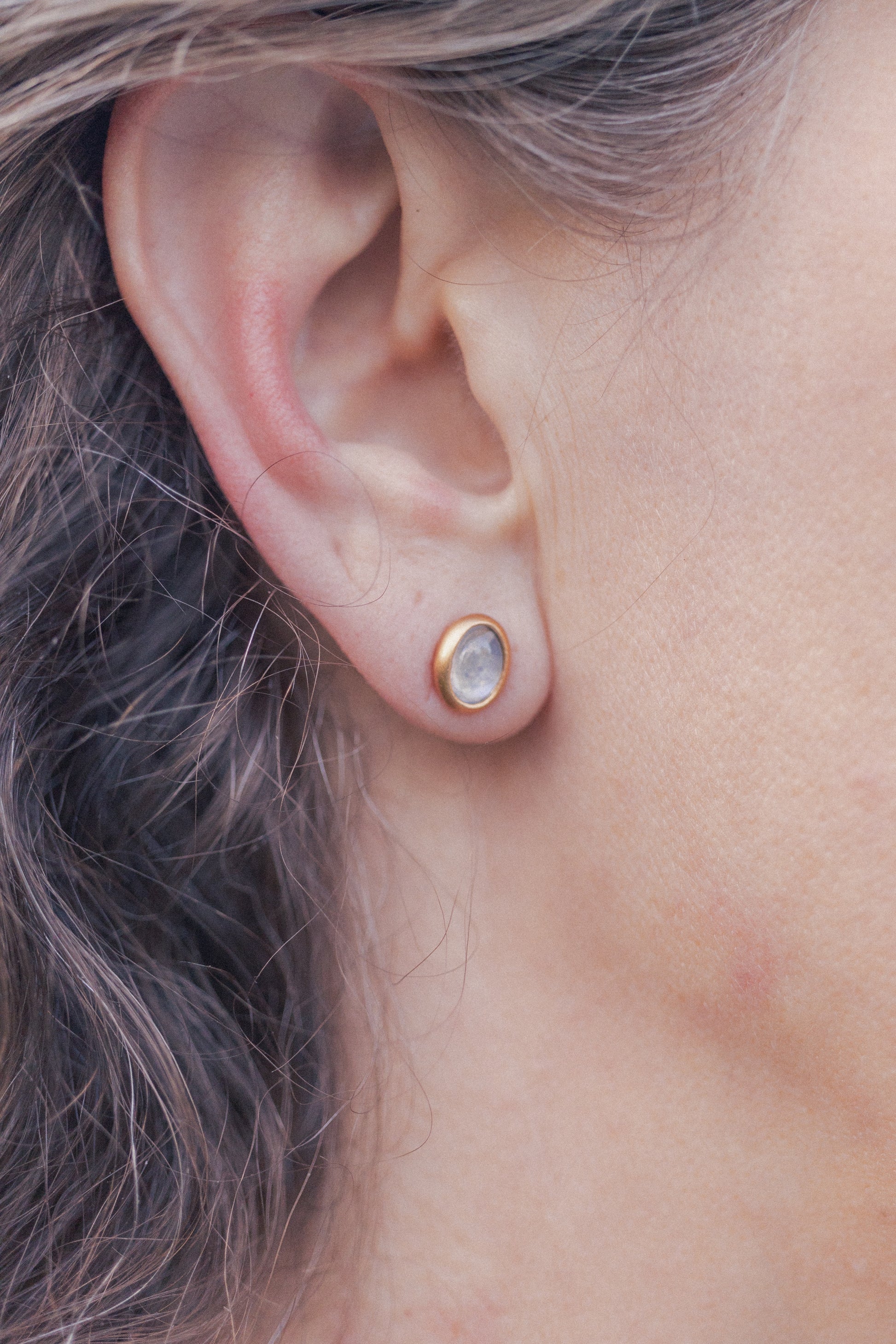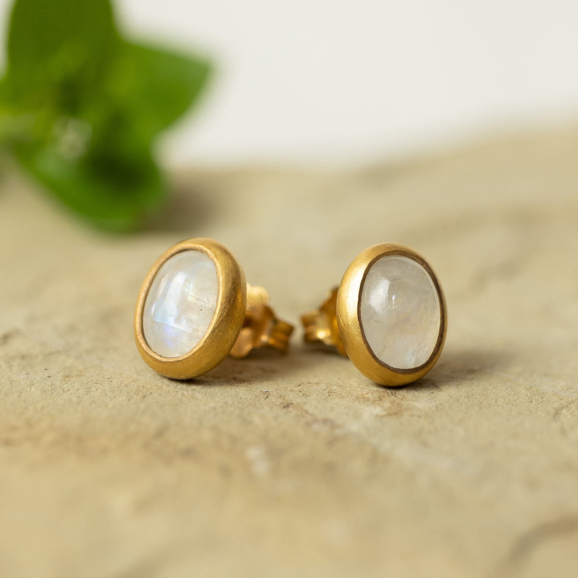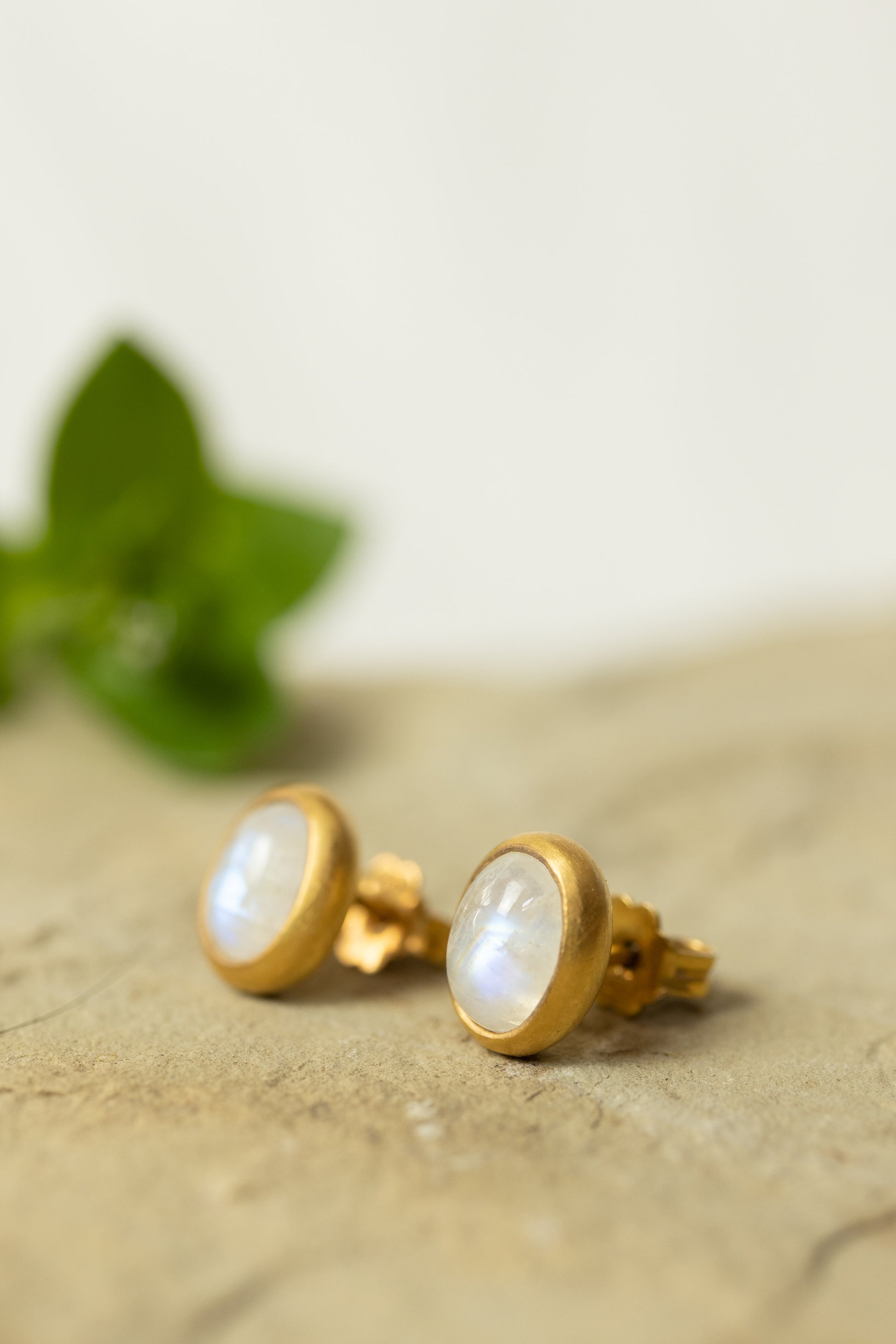 Diese handgefertigten Ohrstecker fangen die Essenz unserer Mondstein-Kollektion ein – zeitlose Eleganz, feine Handwerkskunst und den zarten Schimmer des echten Regenbogenmondsteins.