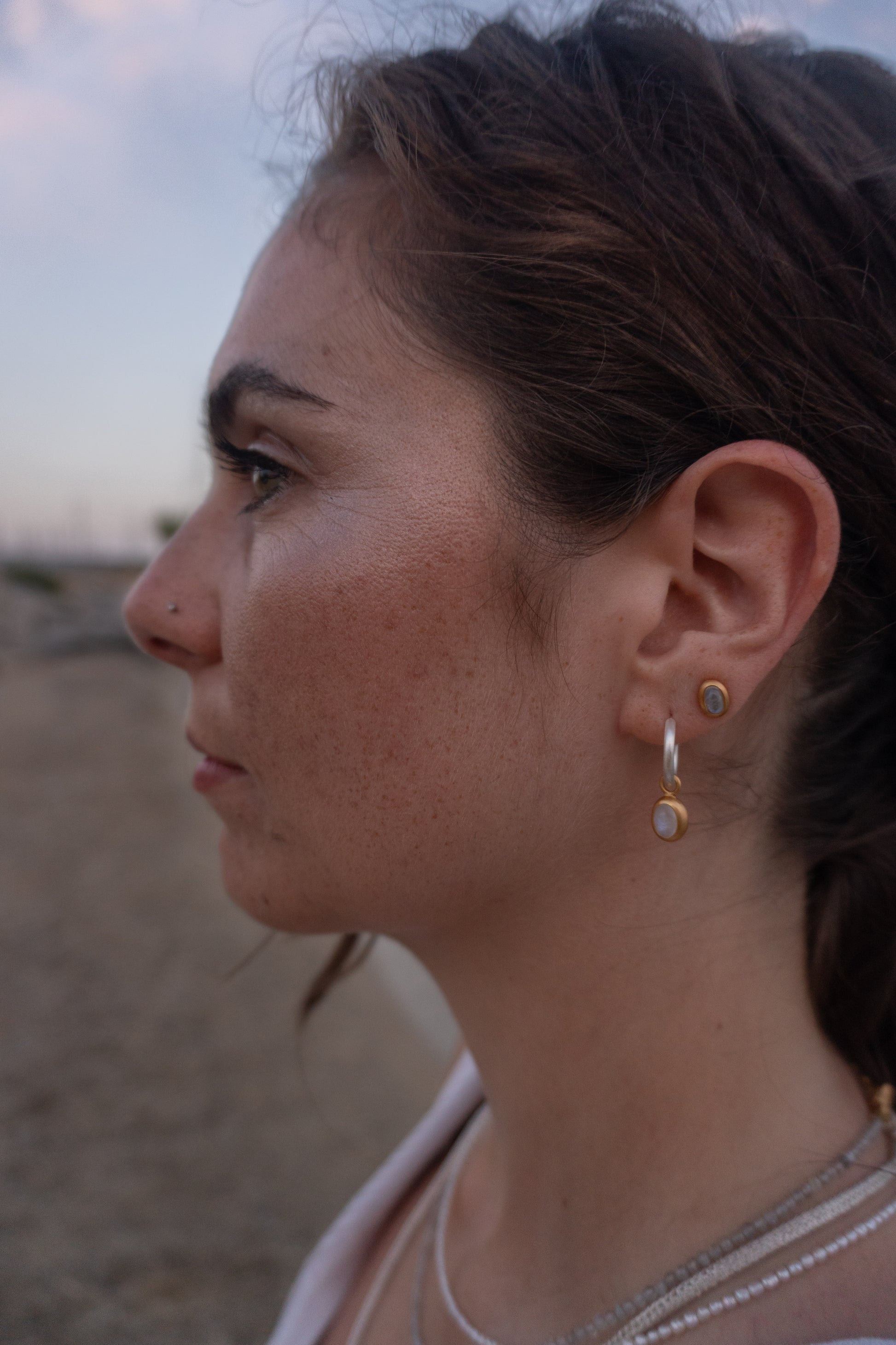 Besonders schön wirken sie in Kombination mit unseren Regenbogenmondstein-Creolen, wenn man doppelte Ohrlöcher trägt – wie auch auf einigen unserer Produktfotos zu sehen ist.