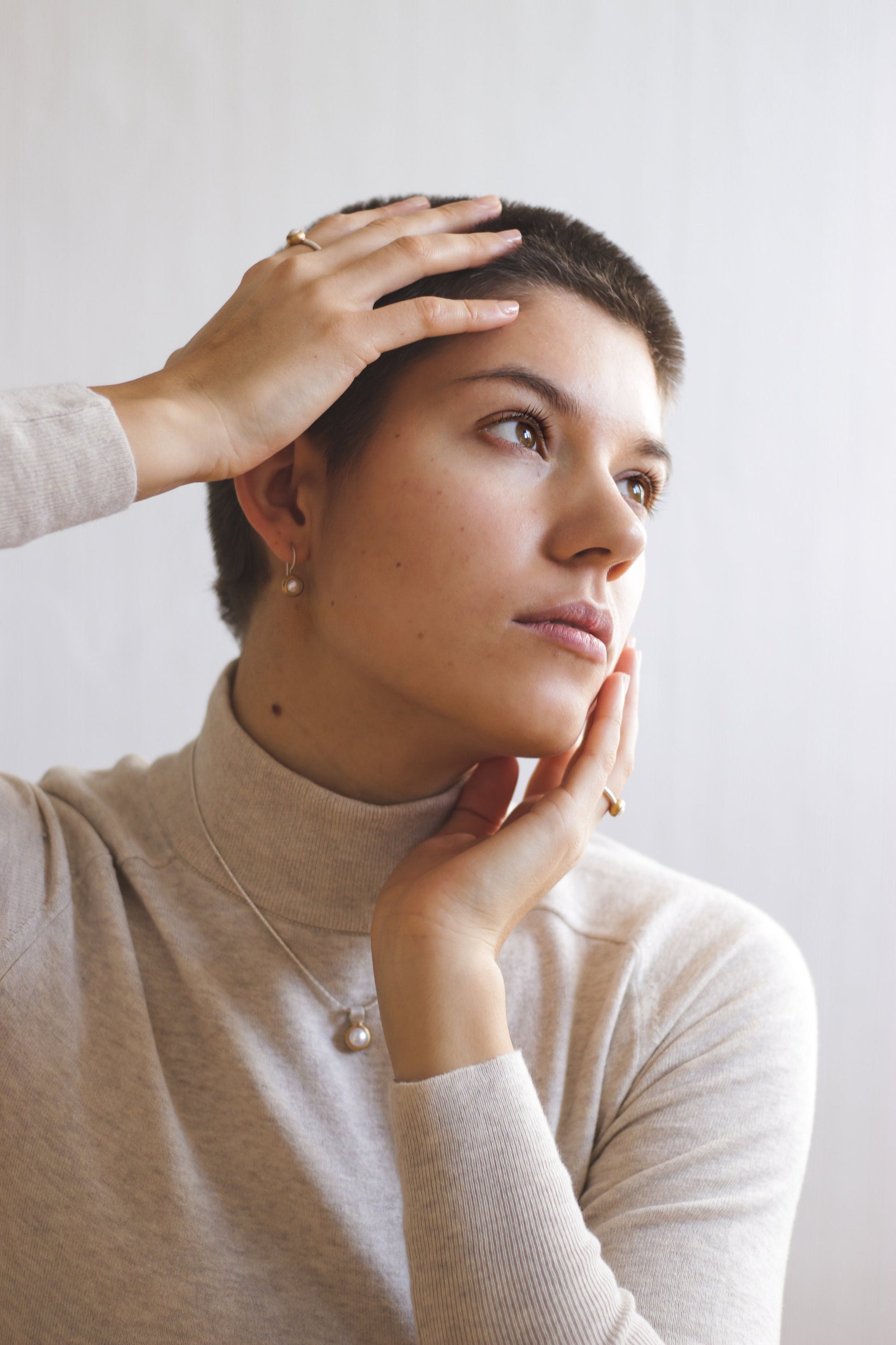 Durch die geschwungene Passform der Schiene legt sich der Ohrhänger geschmeidig um das Ohr und ist präzise in die matt vergoldete Fassung eingearbeitet. Diese umschließt elegant die Salzwasserperle und bringt ihren natürlichen Glanz zur Geltung. Die Ohrhänger sind elegante und schlichte Schmuckstücke, wodurch sie sich wunderbar mit unterschiedlichen Looks kombinieren lassen und beliebig mit den weiteren Modellen der Pearl Classics kombiniert werden können.