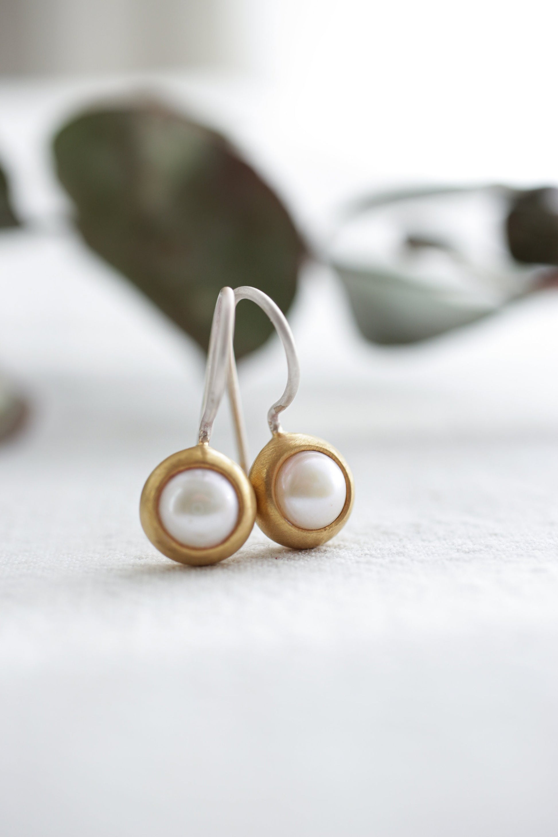 Die vergoldeten Perlen Ohrhänger aus Sterling Silber sind als Teil der Pearl Classics ein Symbol der natürlichen Schönheit und des hochwertigen Designs von Monika Herré.