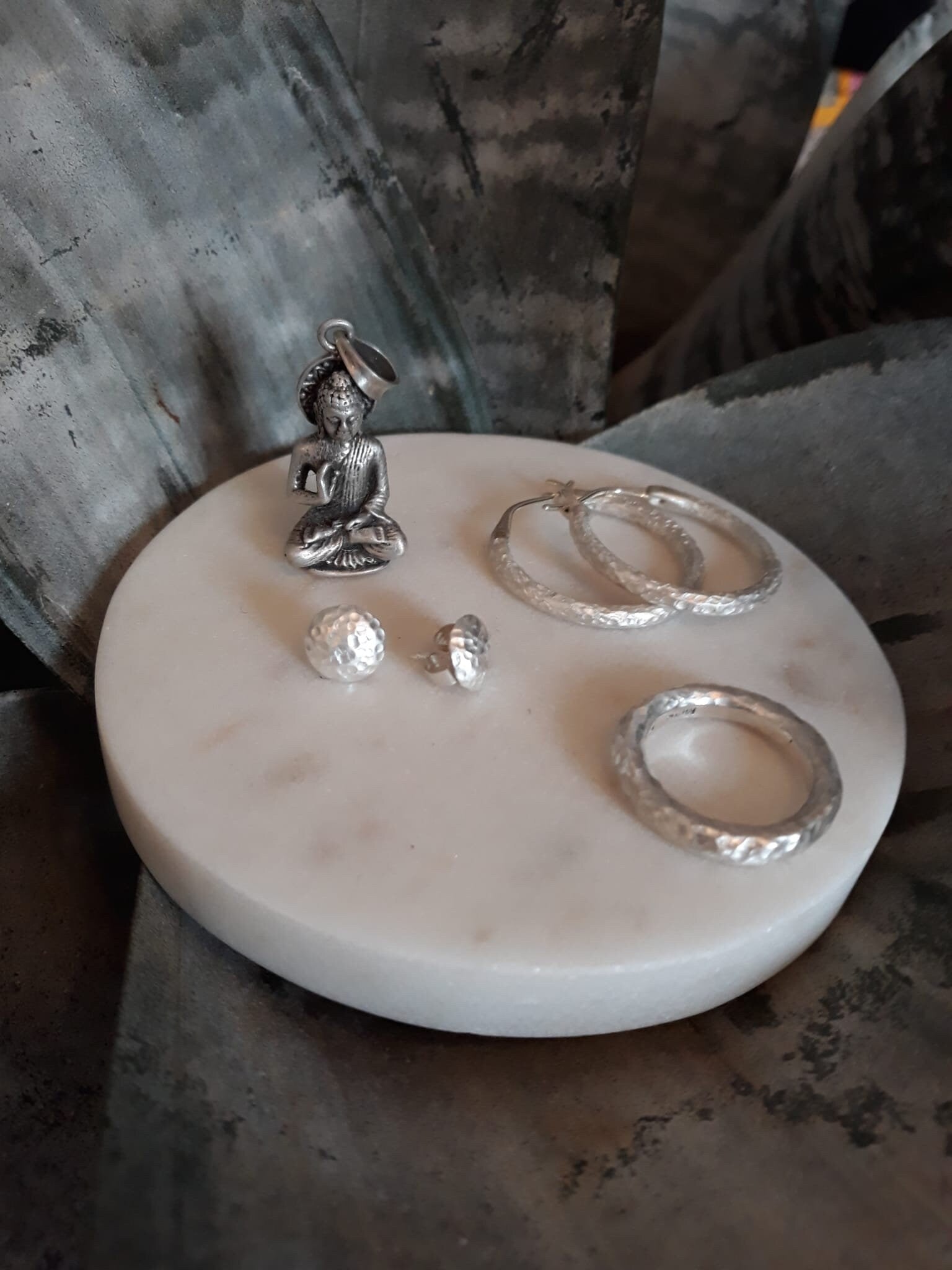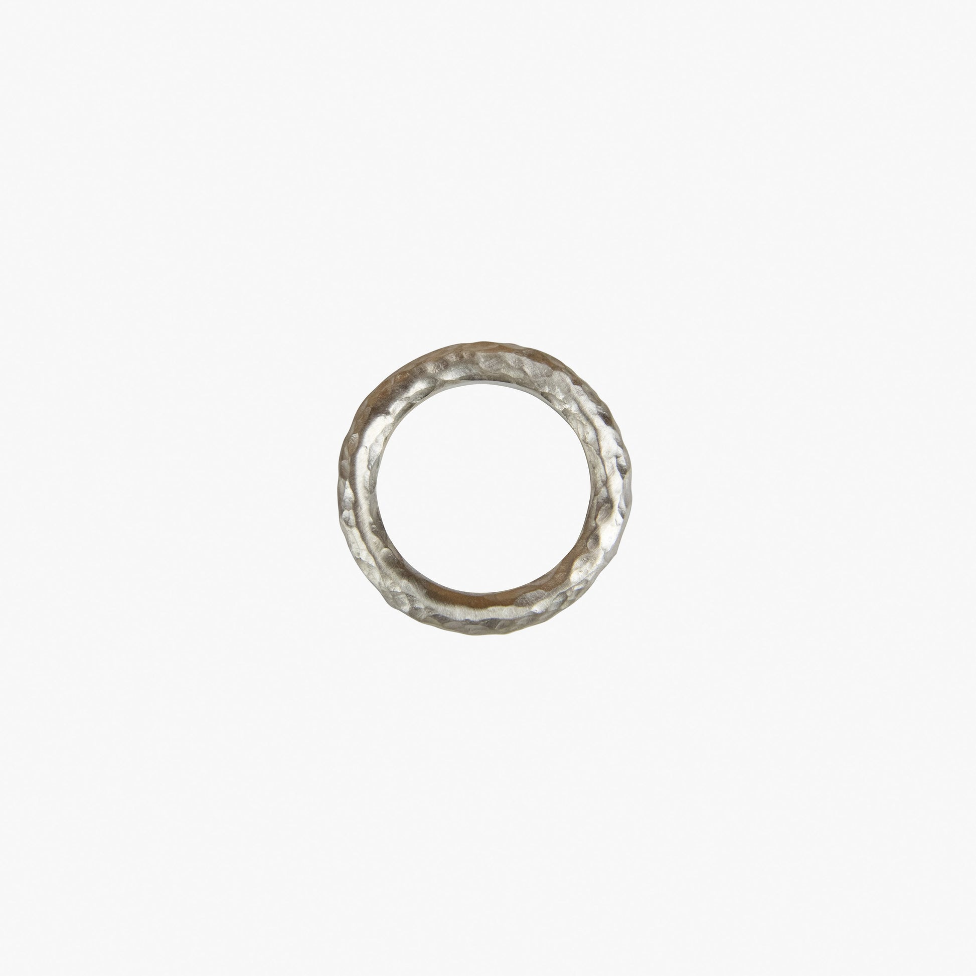 Der 3mm dicke Ring ist aus massiven 925er Sterling Silber gehämmert und wurde für den extra weißen Glanz sie mit einer weiteren Schicht in 975er Sterling Silber überzogen. Durch die gehämmerte Oberflächenstruktur, welche an die liebevoll an die Herkunft der Schmuckstücke erinnert, reflektiert das Licht besonders gut, was es zu einem perfekten Begleiter für sonnige Sommertage macht.